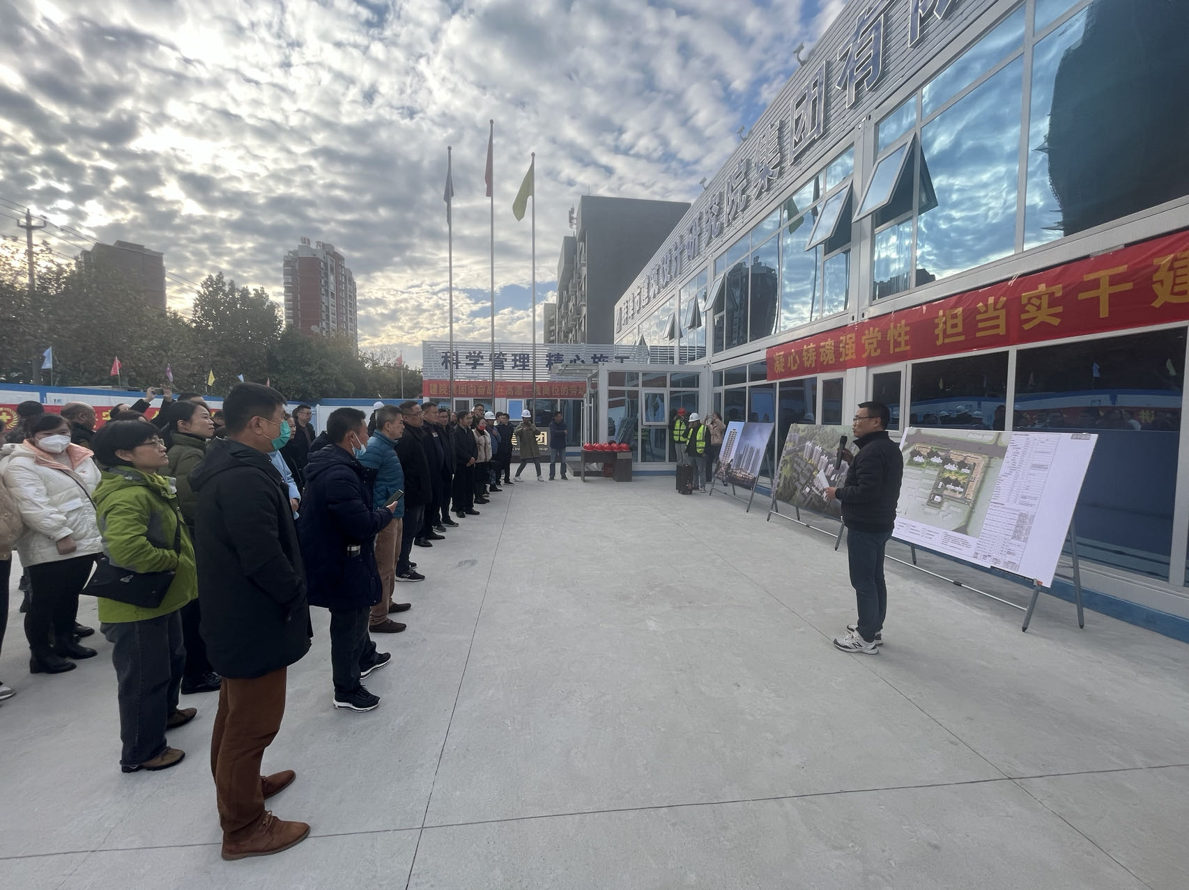 全体人员听取了古原名邸项目部对工程概况、工程进展等内容的汇报,实地参观了项目施工现场,学习了解施工标准化建设、安全文明施工、扬尘防污管理等相关情况。