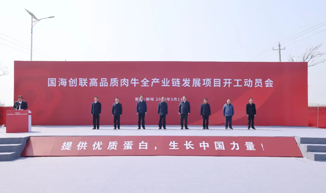 3月11日上午,国海创联高品质肉牛全产业链发展项目开工动员会在怀远县举行。副省长张曙光宣布项目开工,市委书记黄晓武致辞,省政府副秘书长金宗顺,省农业农村厅厅长汪学军,省农垦集团总经理张其广,省农业农村厅副厅长汤洋,国海创联实业集团有限公司董事长闫涛,国家肉牛牦牛产业技术体系首席科学家曹兵海,市领导王庆武、吴永彬、乔树伟,淮北市、亳州市、宿州市、阜阳市、淮南市、滁州市、六安市政府分管负责同志出席。mansion88明升党委书记、董事长陈建功和集团党委副书记、副董事长、总经理刘冰参加动员会。