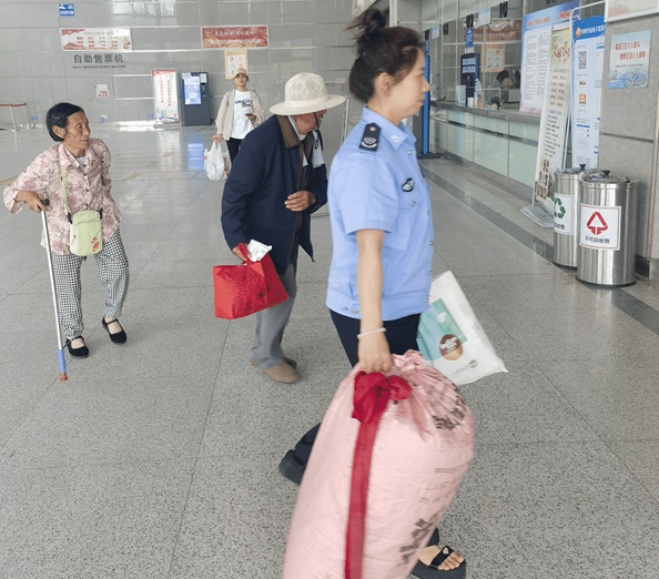 炎夏的一天,综合客运站售票厅内两位腿脚不便、不停翻找行李的老夫妇引起了站务一班班长陆娜的注意,询问后得知:外出探亲准备返程时发现身份证和钱包都找不到了。陆娜立刻购买了车票,帮着把行李拿到候车室候车,耐心安抚焦虑情绪,直至联系上家人说明情况,确定好接站时间才放下心来。当老人家属打来电话说已安全到家,并想来表示感谢时,陆娜婉言谢绝:“这是我们应该做的。”